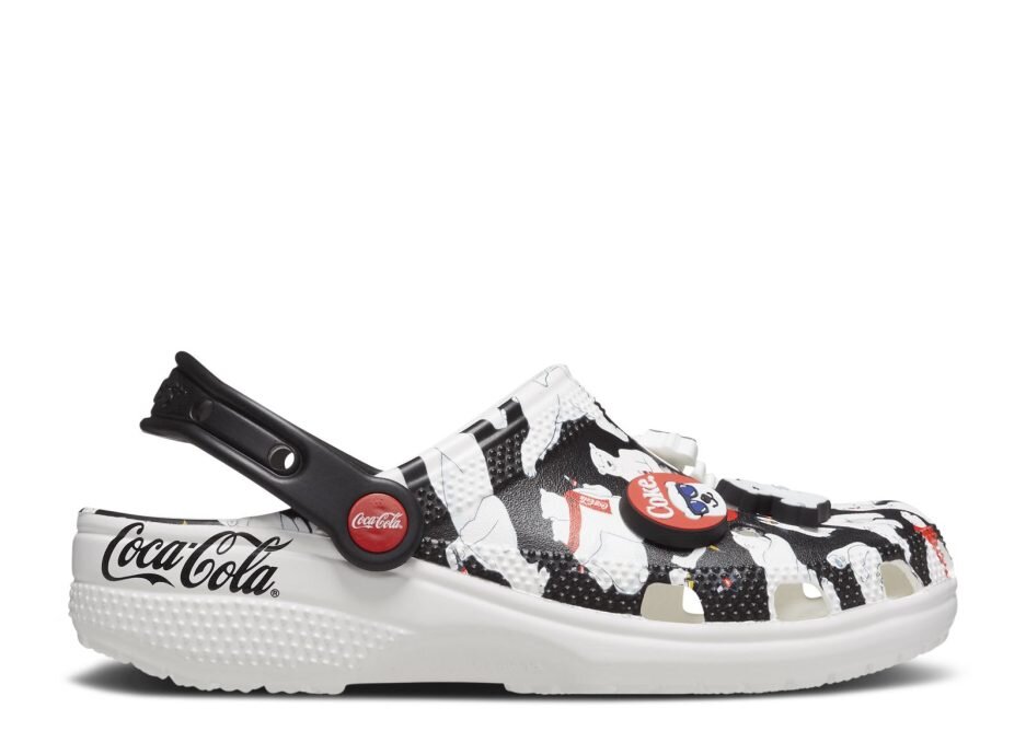 The Coca-Cola x Crocs Classic Clog ‘Polar Bear’ sheds light on the brand’s beloved mascot. These slip-ons have a molded Croslite foam upper that has a black-and-white polar bear allover print adorned with red accents. These slip-on shoes have ventilation ports and a swiveling heel strap for a secure fit. Six Jibbitz charms let you customize the look.